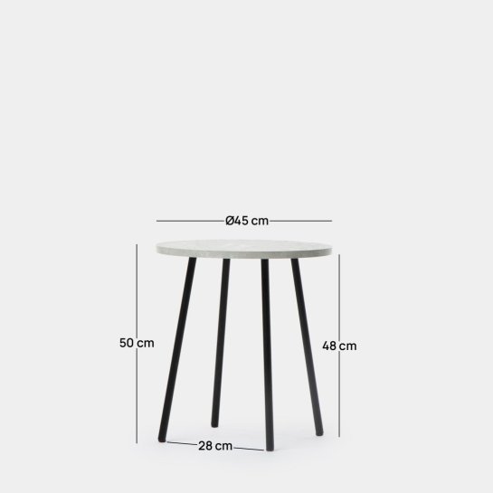 Beistelltisch in Marmoroptik mit schwarzen Tischbeinen