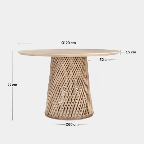 Runder Esstisch Ø120 aus Mangoholz und Naturrattan