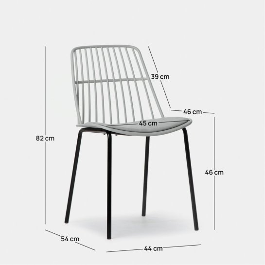 Der Erica Stuhl mit schwarzen Metallbeinen ist ein wunderschönes Stück im modernen Stil mit einem Rücken aus Gittergewebe aus Polyester, was ihn zu einer äußerst vielseitigen Option macht. Wählen Sie aus einer der 2 verfügbaren Farben und platzieren Sie ihn dort, wo Sie ihn am meisten brauchen, sei es in Ihrer Küche, Ihrem Esszimmer oder im Freien. Um die Haltbarkeit des Stuhls zu erhöhen, empfehlen wir, ihn nicht Wetterphänomenen auszusetzen.