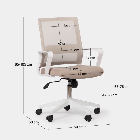 Der Schreibtischstuhl Sayla in Beige ist ideal, um den Arbeits- oder Lernbereich in Ihrem Zuhause zu vervollständigen. Es handelt sich um einen ergonomischen Stuhl, auf dem Sie viele Stunden lang bequem arbeiten können. Er verfügt über eine Verstärkung im Lendenbereich, Armlehnen, eine verstellbare Sitzhöhe und drehbare Räder. Er ist in verschiedenen Ausführungen erhältlich. Wählen Sie diejenige, die am besten zu Ihrem Stil passt.