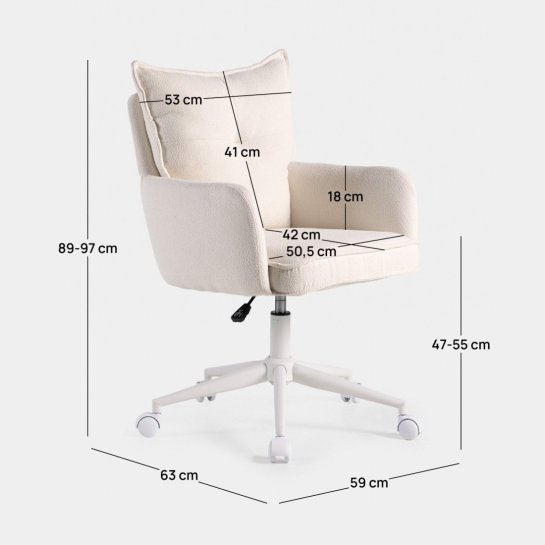 Der Schreibtischstuhl Koen zeichnet sich durch seine klare Struktur aus, die Ihrem Arbeitsbereich einen Hauch von Eleganz verleiht. Seine beigefarbene Polsterung und sein zeitgemäßer Stil schaffen eine elegante und moderne Umgebung. Er verfügt über Armlehnen, eine gepolsterte Rückenlehne, eine höhenverstellbare Sitzfläche, einen Drehfuß und Rollen, damit Sie den Komfort genießen können, den Sie für Ihren Arbeitsalltag benötigen. Er ist auch in Grau erhältlich, sodass Sie die Farbe wählen können, die am besten zu Ihrem Büro passt.