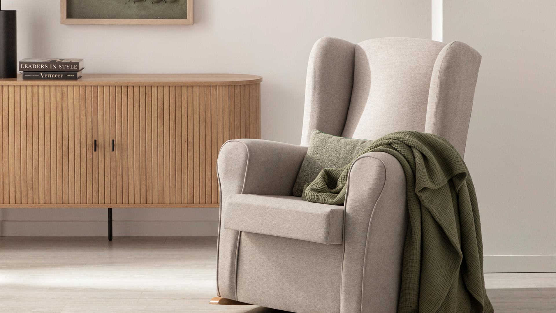Der Schaukelstuhl Lily ist ein schöner und bequemer Stuhl, der zu jedem Stil passt. Er eignet sich ideal als Stillstuhl. Sie können ihn aber auch als Lesestuhl oder einfach zum Ausruhen verwenden. Seine taupefarbene Polsterung kann sowohl mit Erd- und Beigetönen sowie mit Schwarz und Weiß kombiniert werden. Er ist auch in anderen Ausführungen erhältlich. Wählen Sie diejenige, die am besten zu Ihrem Stil passt.