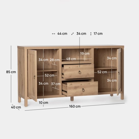 Holen Sie sich mit dem Sideboard Livorno aus Holz in der Farbe Natur zusätzlichen Stauraum und Wärme. Dank seiner zwei Türen, seiner zwei Schubladen und seines Regals können Sie den Stauraum maximal nutzen und für Ordnung in Ihrem Zuhause sorgen. Kombinieren Sie es mit den anderen Möbeln aus der Kollektion und erhalten Sie einen kompletten und harmonischen Look für Ihr Wohnzimmer.