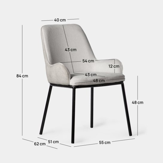 Verleihen Sie Ihrem Zuhause mit dem Esszimmerstuhl Dama einen Hauch von Raffinesse. Mit der Polsterung in einem sanften Grauton und den eleganten schwarzen Beinen wertet dieser Stuhl sofort das Ambiente jedes Esszimmers auf. Seine ergonomische Rückenlehne garantiert eine ausreichende Unterstützung bei langen Zusammenkünften. Entdecken Sie, wie der Stuhl Dama Stil und Funktionalität vereint, jedes Treffen zu einem besonderen Moment macht und jede Ecke in einen gemütlichen und raffinierten Bereich verwandelt.