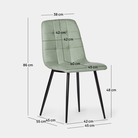 Der gepolsterte Esszimmerstuhl Ailan in Mintgrün mit schwarzen Stuhlbeinen ist die perfekte Wahl, um Ihrem Zuhause einen Hauch von Stil und Komfort zu verleihen. Sein schlichtes und minimalistisches Design passt zu jedem Einrichtungsstil und verleiht jedem Raum Charakter und Persönlichkeit. Er ist in einer Vielzahl von Farben erhältlich. Wählen Sie diejenige, die am besten zu Ihrem Stil passt.