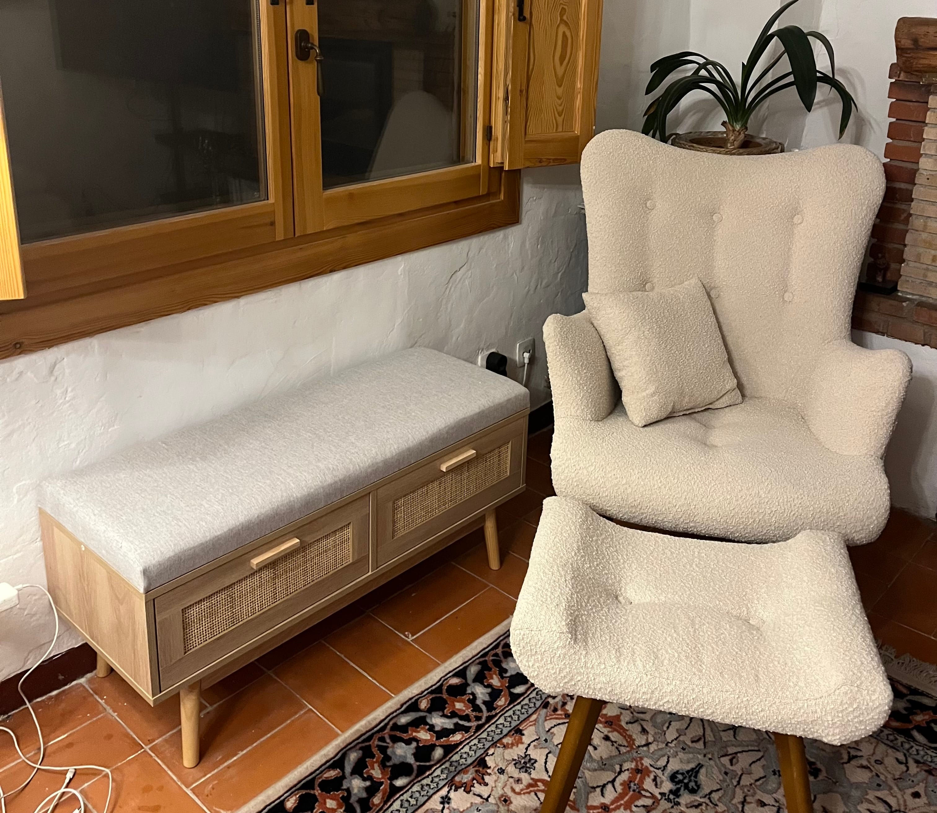 El banco en ratán natural Tahiti aportará un toque acogedor a la habitación de tu peque. Cuenta con un mullido cojín que brinda comodidad extra y con dos amplios cajones donde podréis guardar los juguetes, cuentos o ropa. Perfecto para sentarse a ponerse los zapatos o como espacio extra de juego. Combínalo con los muebles del resto de la colección Tahiti y crea un ambiente único y especial.