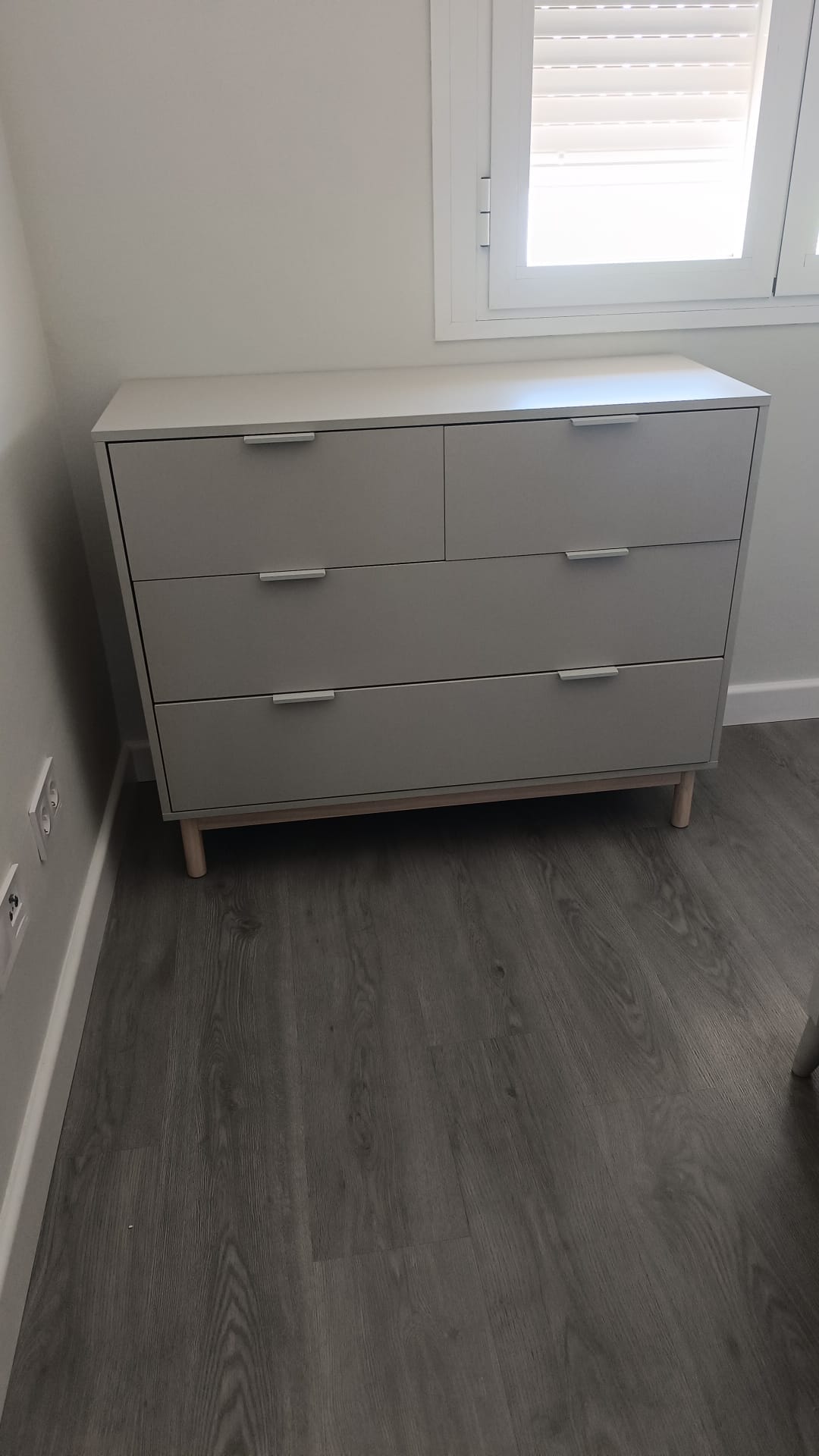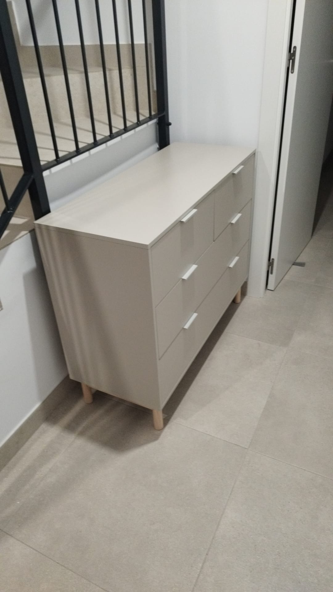 La cómoda de 4 cajones Elian es la elección perfecta para añadir un toque luminoso a tu dormitorio. Sus amplios cajones ofrecen un gran espacio de almacenamiento, ideal para guardar y organizar tus pertenencias con facilidad. Descubre el resto de la colección y consigue el look completo. También está disponible en acabado gris perla, ¡elige la opción que mejor se adapte a ti!