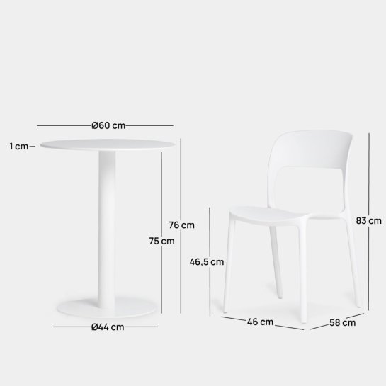 ¡Aprovéchate de este pack! La silla Klint se caracteriza por su diseño minimalista y elegante. Es apilable, fabricada en polipropileno, ideal para cualquier espacio, ya sea tu cocina, salón, jardín o balcón. La mesa de jardín redonda Thule, fabricada completamente en metal, es perfecta para estar al exterior y soportar las inclemencias del tiempo. También puedes encontrar el pack en color beige y elegir la opción que mejor se adapte a la decoración de tu hogar.