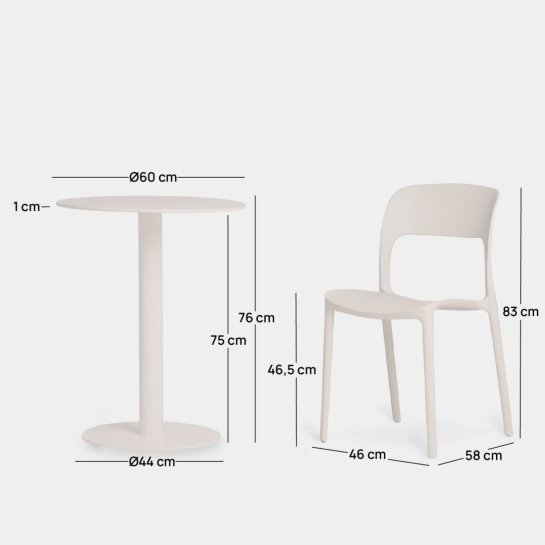 Pack 2 sillas en polipropileno beige y mesa de jardín redonda Thule