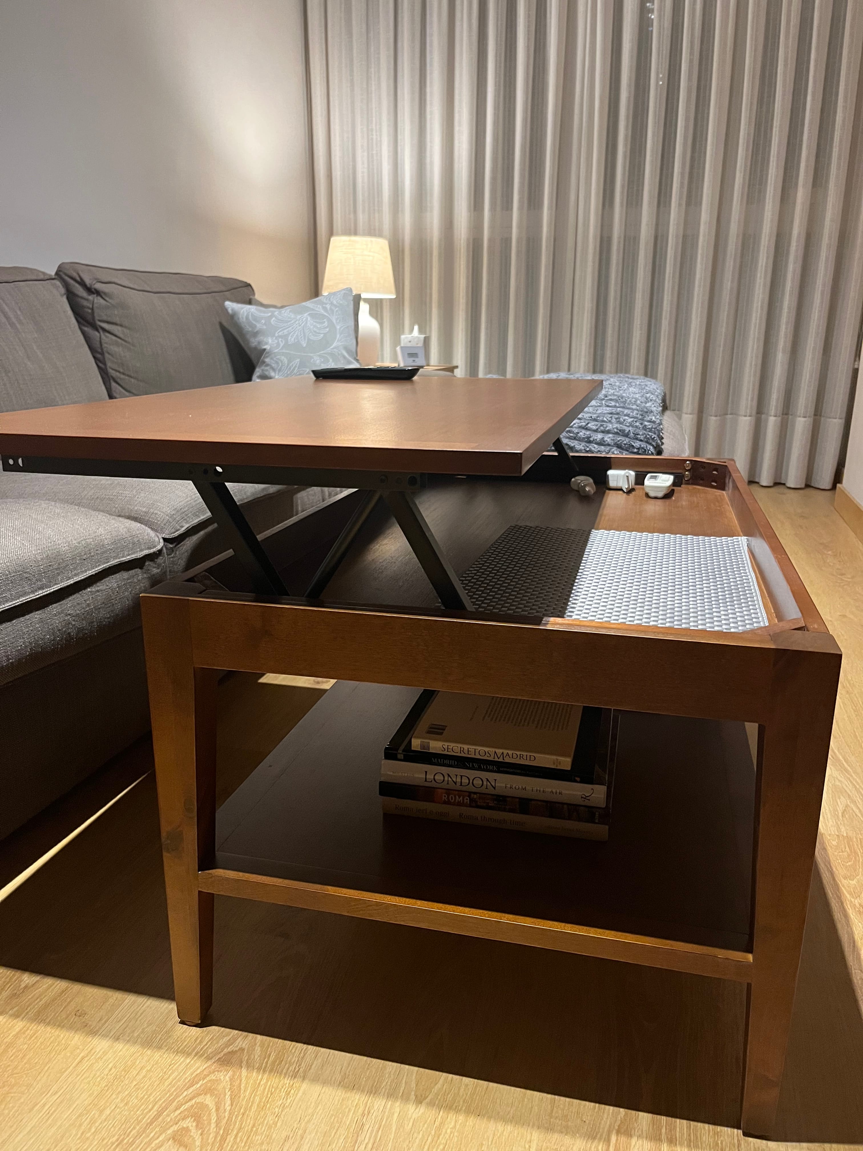Mesa de centro elevable en chapa de pino y madera de abedul