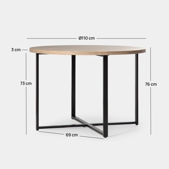 Mesa de comedor redonda Ø110 en madera color natural con pata negra