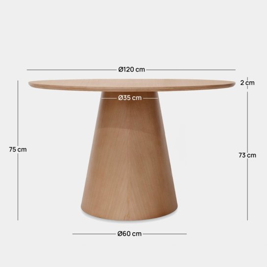 Mesa de comedor redonda Ø120 en chapa de roble