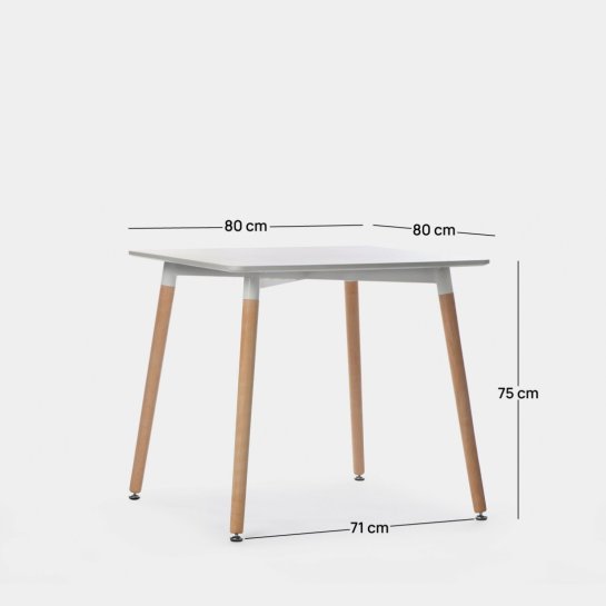 Mesa de comedor cuadrada 80 en madera color blanco con pata natural