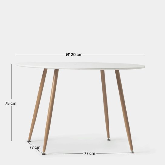 Mesa de comedor redonda Ø120 en madera color blanco con pata natural