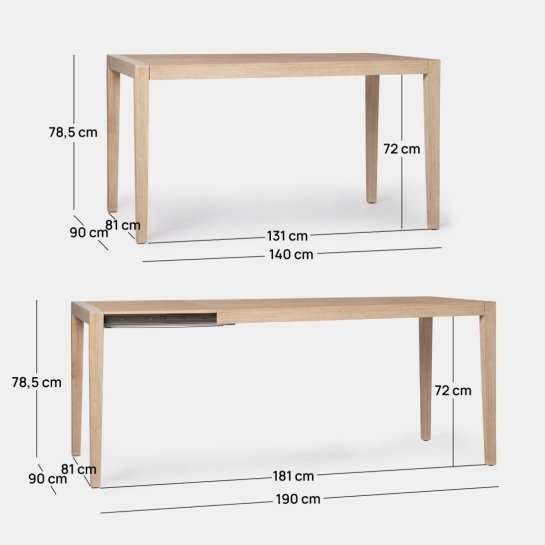 La mesa de comedor extensible 140/190 Mara en madera natural encaja en cualquier salón, comedor o cocina. Su sencillo sistema de apertura te sacará de un apuro en más de una ocasión, ya que permite pasar de una mesa de 6 a 8 comensales en cuestión de segundos. Está disponible en varios tamaños y acabados, escoge la que más te guste.