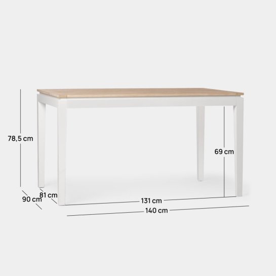 Mesa de comedor rectangular 140 en chapa de pino y madera de abedul