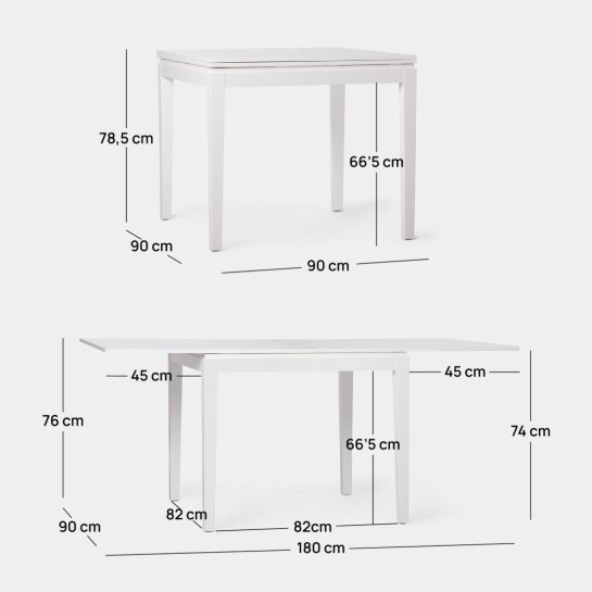Mesa de comedor cuadrada extensible 90/180 lacada en color blanco