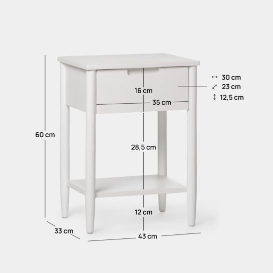 Mesita de noche de 1 cajón lacada en blanco