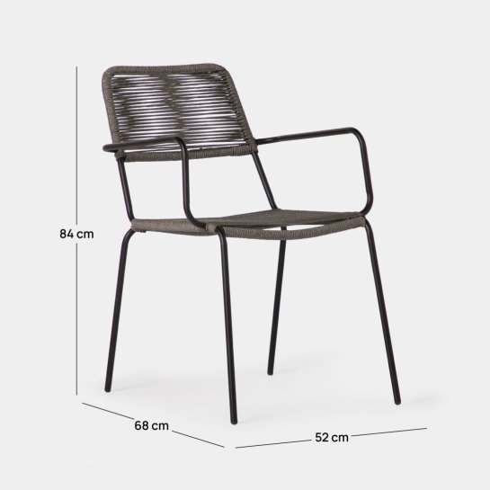 Silla con reposabrazos en cuerda gris oscuro y metal negro