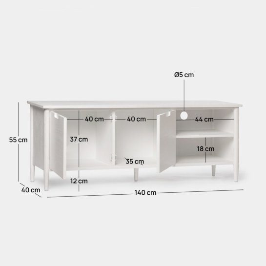 Mueble TV 140 blanco en chapa de pino y madera de abedul