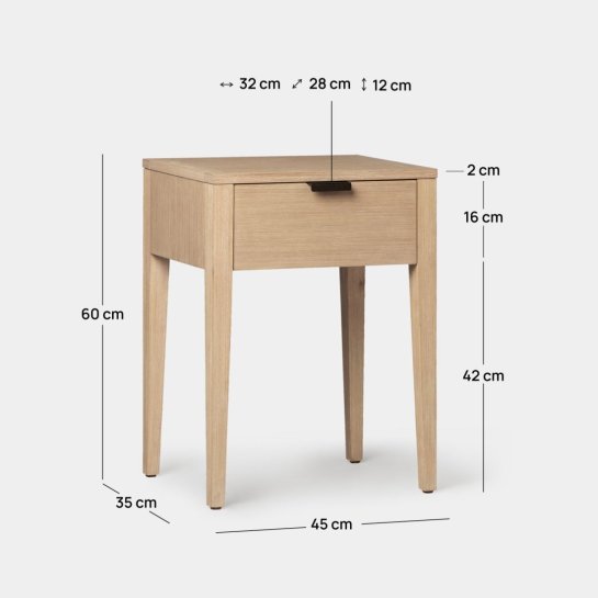 ¡Aprovéchate de este pack! Añade un toque de elegancia y funcionalidad a tu dormitorio con la mesita de noche blanca en chapa de pino y madera de abedul Aima. Su cajón superior te ayudará a organizar y almacenar todos tus objetos personales y mantener el orden en el dormitorio. Disponible en varios acabados, escoge el que mejor encaje con tu estilo.
