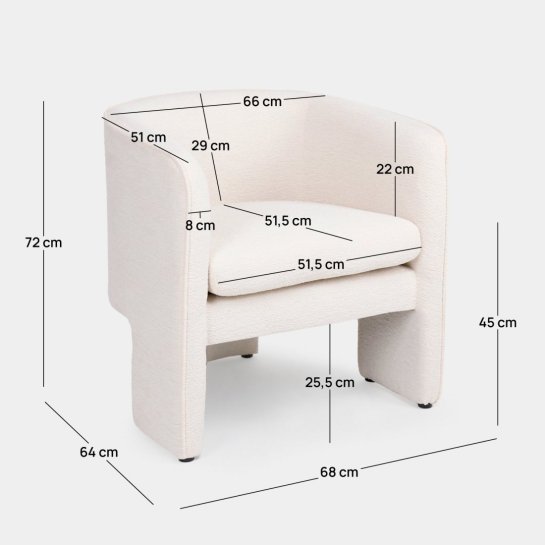 El sillón de lectura Amie en tejido bouclé es perfecto para cualquier rincón. Gracias a su diseño y textura aporta calidez y personalidad a tu hogar. Este sillón se convierte en el mejor aliado para disfrutar de tus momentos de tranquilidad. Su estilo atemporal y su excepcional comodidad lo hacen indispensable en cualquier espacio.