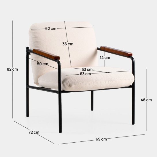 El sillón de lectura Kai es la combinación perfecta entre elegancia y comodidad. Su tapizado beige se une a las patas metálicas negras y los reposabrazos de madera para crear un look sofisticado que encaja perfectamente en cualquier ambiente. Su asiento amplio y respaldo ligeramente inclinado están pensados para ofrecerte el máximo confort. Con su diseño limpio y moderno, este sillón creará en tu casa un rincón acogedor y lleno de personalidad. Está disponible también en verde, para que elijas la opción que más te guste.