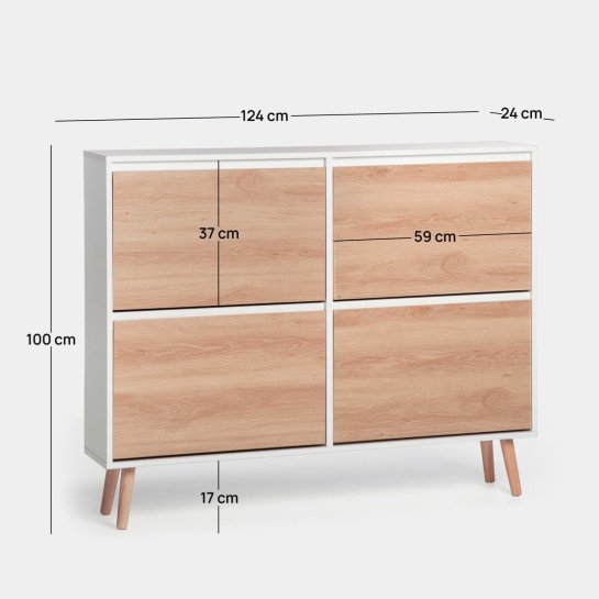 Mantén tu hogar de lo más organizado con el zapatero en madera color blanco y natural Kemi. Su diseño de estilo nórdico aporta un toque fresco y luminoso a cualquier espacio, mientras que su capacidad de almacenamiento te permite guardar y ordenar tus zapatos de manera práctica y cómoda. Es ideal para mantener la entrada o el vestidor en perfecto orden. Descubre toda la colección Kemi y crea un ambiente armonioso y acogedor en tu hogar.