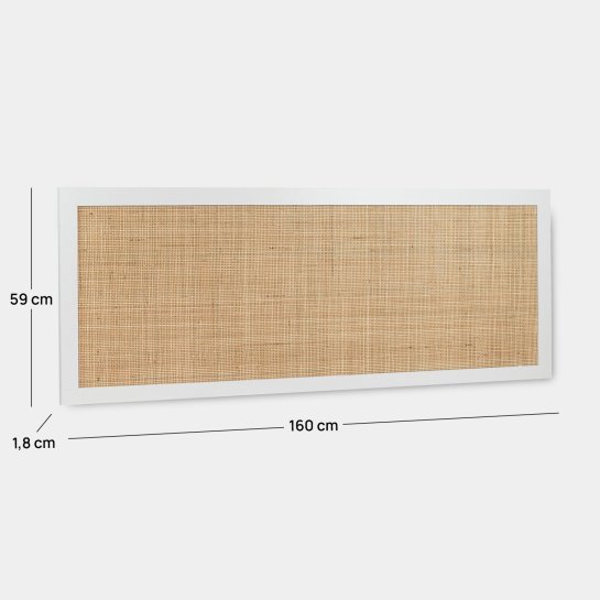 Headboard in white wood and natural rattan for bed sizes 135, 150, and 160