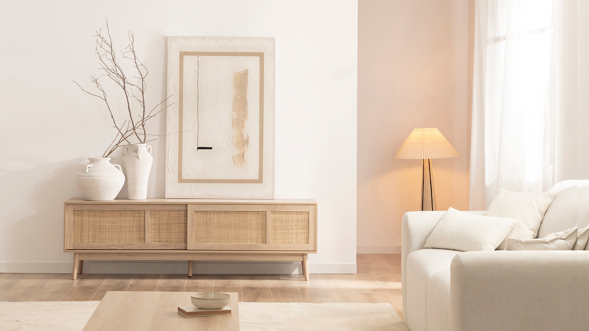 Add a touch of warmth and style to your home with the Ikigai 180 TV stand, which fuses the serenity of Scandinavian design with the elegance of Japanese minimalism. Finished in wood and natural rattan, it offers a warm, organic style that transforms any living room. Its sliding door system allows you to optimise space and keep all your devices and accessories tidy. Combine it with other furniture from the collection for a complete and timeless look.