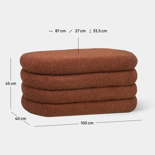 The Roma bench with storage, upholstered in terracotta-colored sheepskin, is the perfect combination of style and functionality. Its elegant and practical design makes it a versatile piece for any home. The terracotta-colored sheepskin upholstery adds a touch of softness and warmth, while the hidden storage compartment offers an ideal solution for keeping objects such as blankets, cushions, or magazines organized.