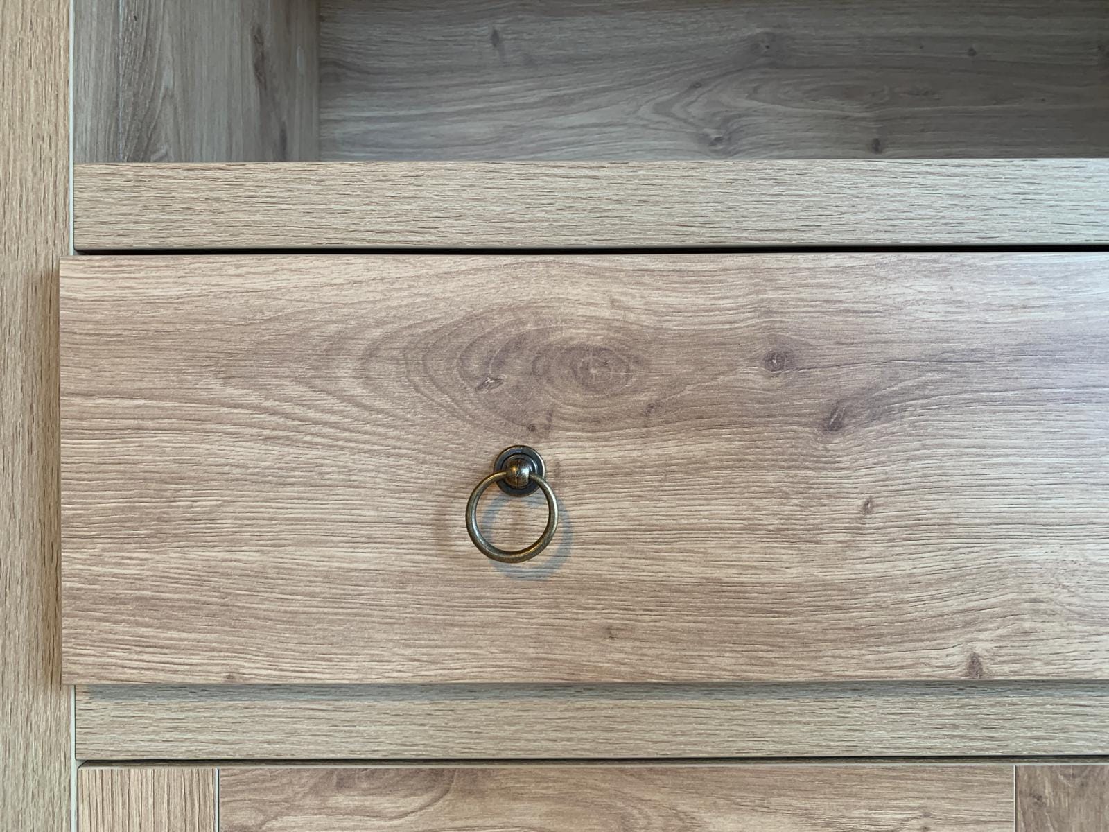 Add a touch of warmth and style to any space with the Livorno natural wood display cabinet. It features two large glass doors where you can showcase your best dishes, and two doors and a drawer that offer discreet storage space for anything you prefer to keep out of sight. At the bottom of the glass, you will find an engraving that certifies its compliance with the highest safety and quality standards. Combine it with the furniture from the rest of the collection and get the complete look!