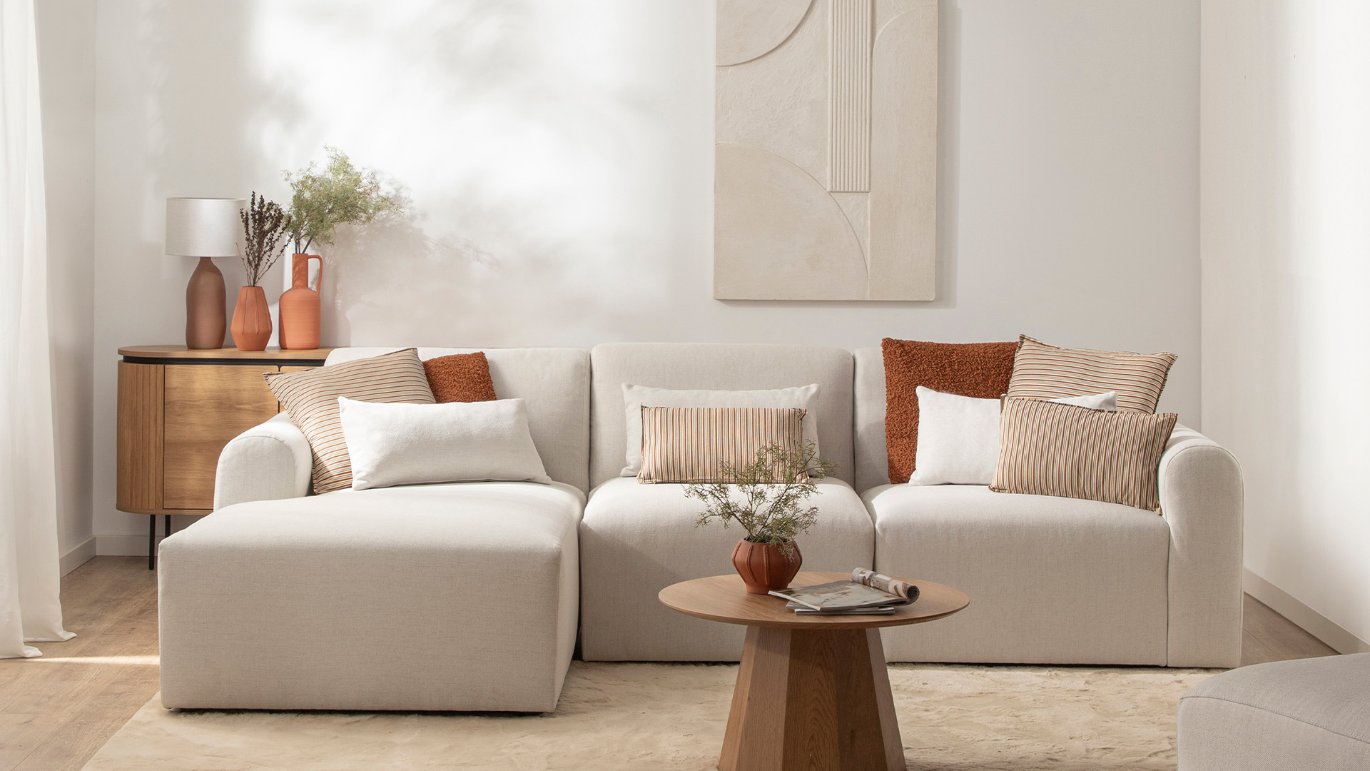 The 3-seater left chaise longue modular sofa Cillian stands out for its versatility and ability to adapt to any space, making it the perfect choice for modern homes. Its design with curved lines not only adds a contemporary and stylized touch, but also envelops the body ergonomically, offering an unparalleled resting experience. In addition, it includes three decorative cushions, which not only add an extra level of comfort, but also elevate its elegance.