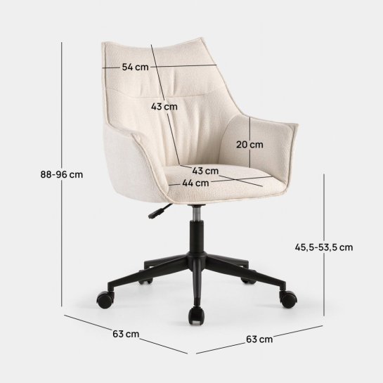The Holger desk chair combines design and functionality to bring a sophisticated touch to your workspace. Its beige upholstery and sleek lines create an elegant and contemporary aesthetic in any environment. With armrests, adjustable height, swivel system and castors, it offers you the comfort you need to work comfortably every day. Its unique style makes it a special piece that makes a difference in your home.