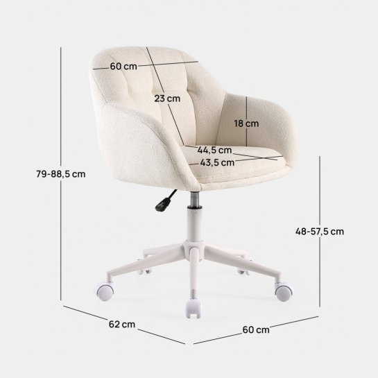 The Neka desk chair stands out for its balance between comfort and functionality, ideal for improving your workspace. Its padded seat and backrest provide a feeling of softness and well-being, creating a warm and pleasant environment. It features armrests, adjustable height, a swivel base and castors, so you can enjoy the comfort and mobility you need during your working day. A perfect and cosy option for your office or study corner.