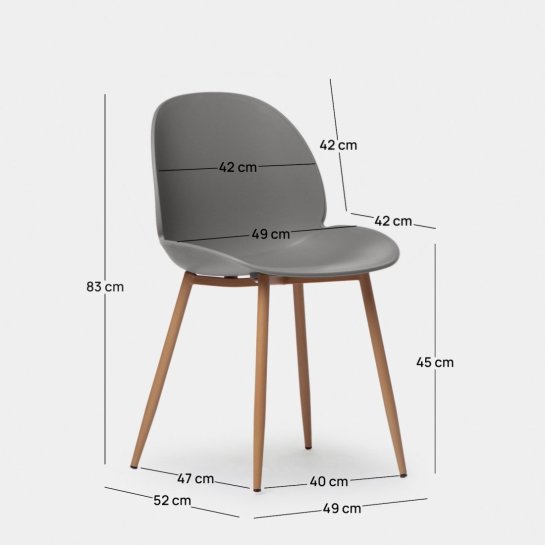 The Ceilan dining chair with a metal leg and wood effect is one of the most original and versatile designs in our catalog. Due to its polypropylene backrest, it is a perfect option for your desk, or even as an outdoor chair. It is available in a range of colors that will enchant lovers of Nordic design. For greater durability of the chair, we advise avoiding exposure to weather phenomena.