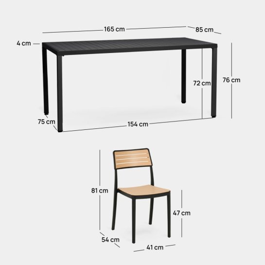Take advantage of this Set! The Hilda chair is the ideal option for those looking for the perfect combination of elegance and functionality. It is stackable, made of polypropylene, a perfect choice for use in your kitchen, garden or terrace. The rectangular Jastorf garden table, made of polypropylene and metal, is ready to be outdoors and withstand weather conditions. You can also find the Set in white and choose the option you like best.