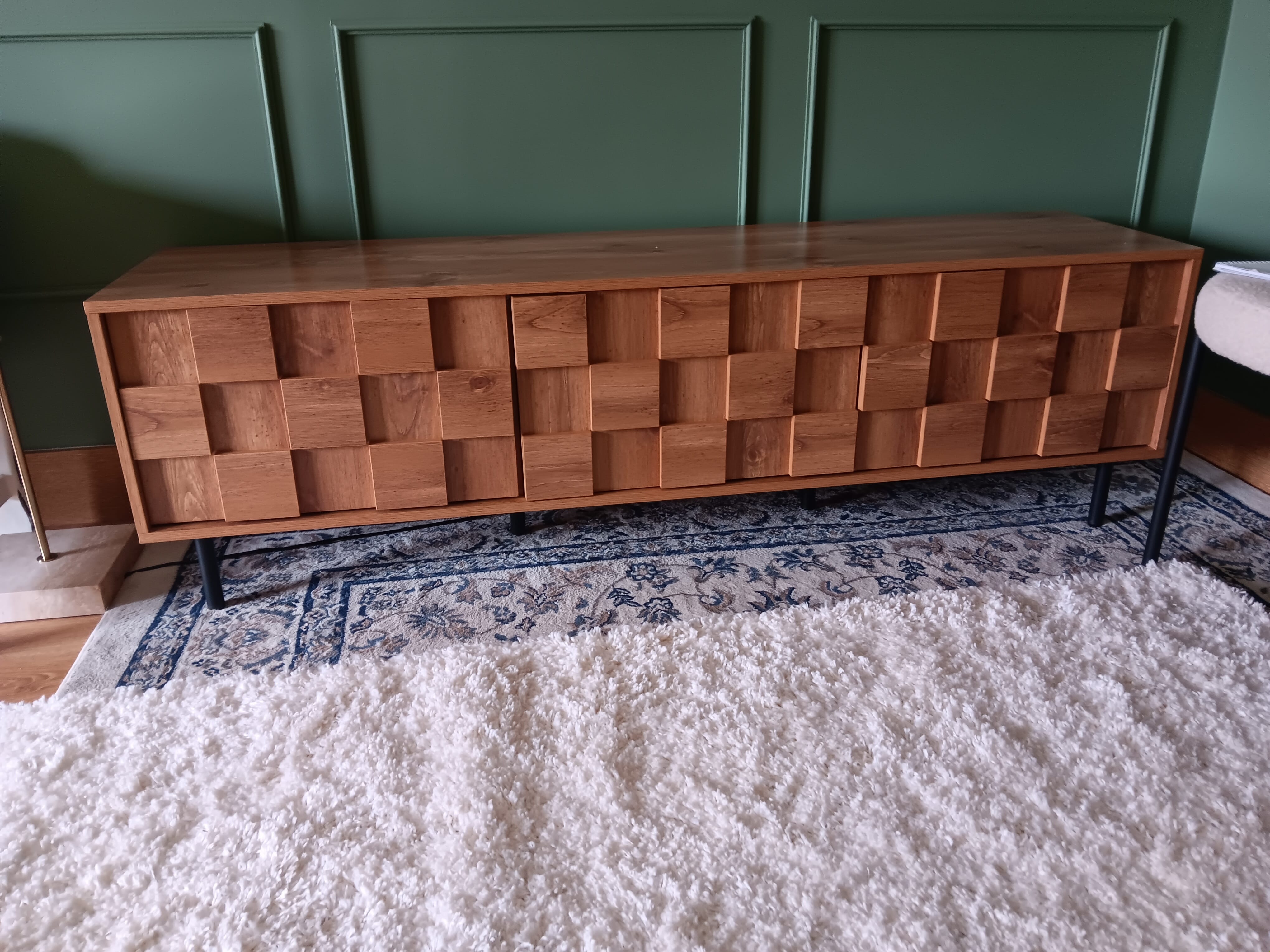 Elevate the style of your living room with the Ivar 160 TV stand, which combines a natural wood finish with modern metal legs. Its distinctive textured detail creates a unique visual impact, adding depth and character while organising your electronic devices and multimedia items in a practical and accessible way. It offers ample storage space, perfect for keeping all your technological accessories tidy. Discover the rest of the Ivar collection and create a sophisticated and modern atmosphere for your home.