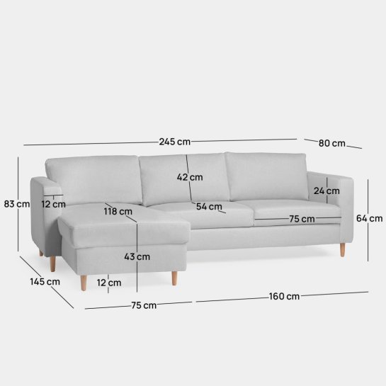 Le canapé chaise longe trois places Beth est idéal et très pratique. Il est réversible, vous pourrez donc placer la chaise longue où vous le souhaitez. C'est un canapé confortable et très fonctionnel. Vous pourrez également le trouver disponible en beige.