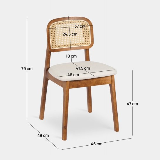 La chaise de salle à manger Tove, fabriquée en bois d'hévéa massif avec une assise rembourrée beige, allie fonctionnalité et élégance de manière exceptionnelle. Son dossier présente des détails en rotin synthétique qui lui confèrent caractère et distinction. Grâce à son style intemporel, elle s'adapte parfaitement à tous les environnements. Comme il s'agit de bois naturel, sa teinte peut présenter de légères variations. Elle est également disponible en teinte naturelle afin que vous puissiez choisir l'option qui vous plaît le plus.