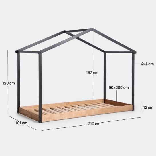 Lit pour matelas de 90 cm en bois de pin couleur naturelle et gris anthracite