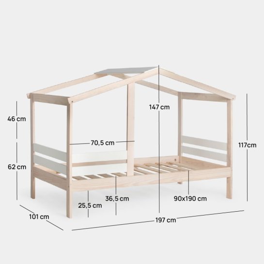 Le lit enfant Lior est idéal si vous cherchez à ajouter une touche amusante à la chambre de votre petit. Sa structure en forme de maison encourage l'imagination des enfants, créant un espace unique plein de charme. Il est parfait pour les matelas de 90x190 cm et est également disponible en vert anthracite, afin que vous puissiez choisir l'option qui convient le mieux à la décoration de votre maison.