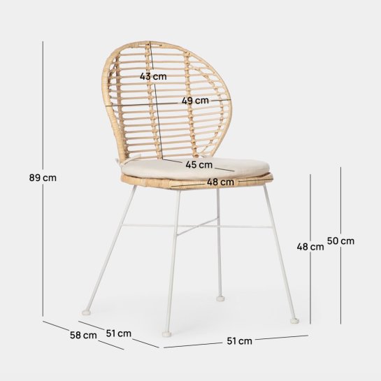 La chaise en rotin naturel et pied métallique noir Kala apporte naturel, chaleur et élégance à la décoration de n'importe quelle maison. Son siège a été tressé à la main par des experts dans l'art du rotin naturel. Par conséquent, il peut présenter des irrégularités propres au matériau. Il comprend un coussin qui ajoute un confort supplémentaire à l'assise, bien que vous puissiez l'enlever à tout moment.