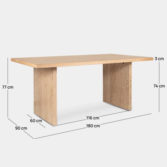 Table à manger rectangulaire 180 en placage de frêne et bois d'hévéa
