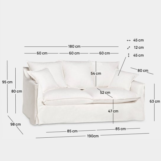 Il divano Bruna da 3 posti è la scelta perfetta per coloro che cercano un design classico e senza tempo. Rivestito in una miscela di 65% cotone e 35% lino, emana freschezza e luminosità. La sua struttura, seduta e schienale sfoderabili facilitano la pulizia e la manutenzione, garantendo un aspetto impeccabile nel tempo. Inoltre, include due cuscini decorativi che aggiungono un tocco di stile e comfort.