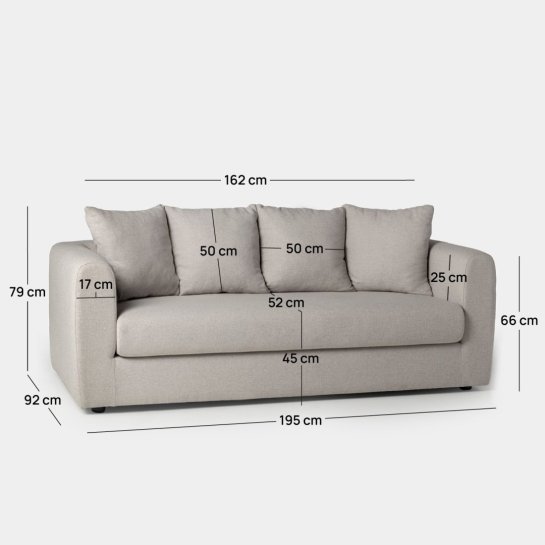 Il divano Chloe da 3 posti rivestito in grigio topo si distingue per le sue linee moderne e il suo design contemporaneo. Presenta forme arrotondate e una finitura elegante che lo rende il centro dell'attenzione di qualsiasi soggiorno. I suoi molteplici cuscini, insieme al suo ampio sedile ben imbottito, offrono un'esperienza di comfort eccezionale, invitando a rilassarsi in qualsiasi momento della giornata.