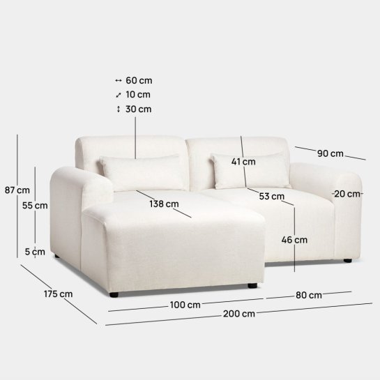 Il divano modulare a 2 posti con chaise longue sinistra Cillian si distingue per la sua versatilità e capacità di adattarsi a qualsiasi spazio, rendendolo la scelta perfetta per le case moderne. Il suo design dalle linee curve non solo conferisce un tocco contemporaneo e stilizzato, ma avvolge anche il corpo in modo ergonomico, offrendo un'esperienza di riposo senza pari. Inoltre, include due cuscini decorativi che non solo aggiungono un tocco di comfort in più, ma ne esaltano anche l'eleganza.