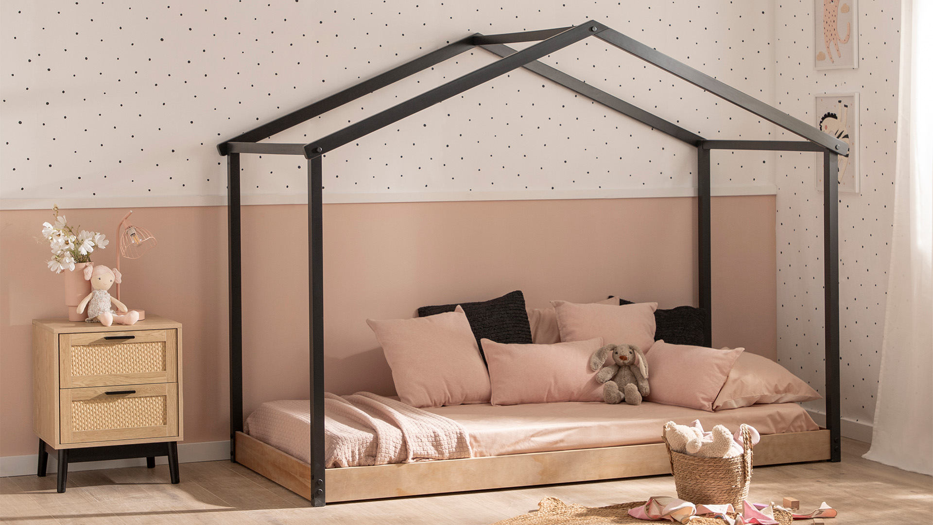 Letto per materasso da 90 cm in legno di pino colore naturale e grigio antracite