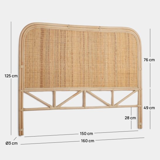 Testiera in rattan naturale per letto da 135, 150 e 160.