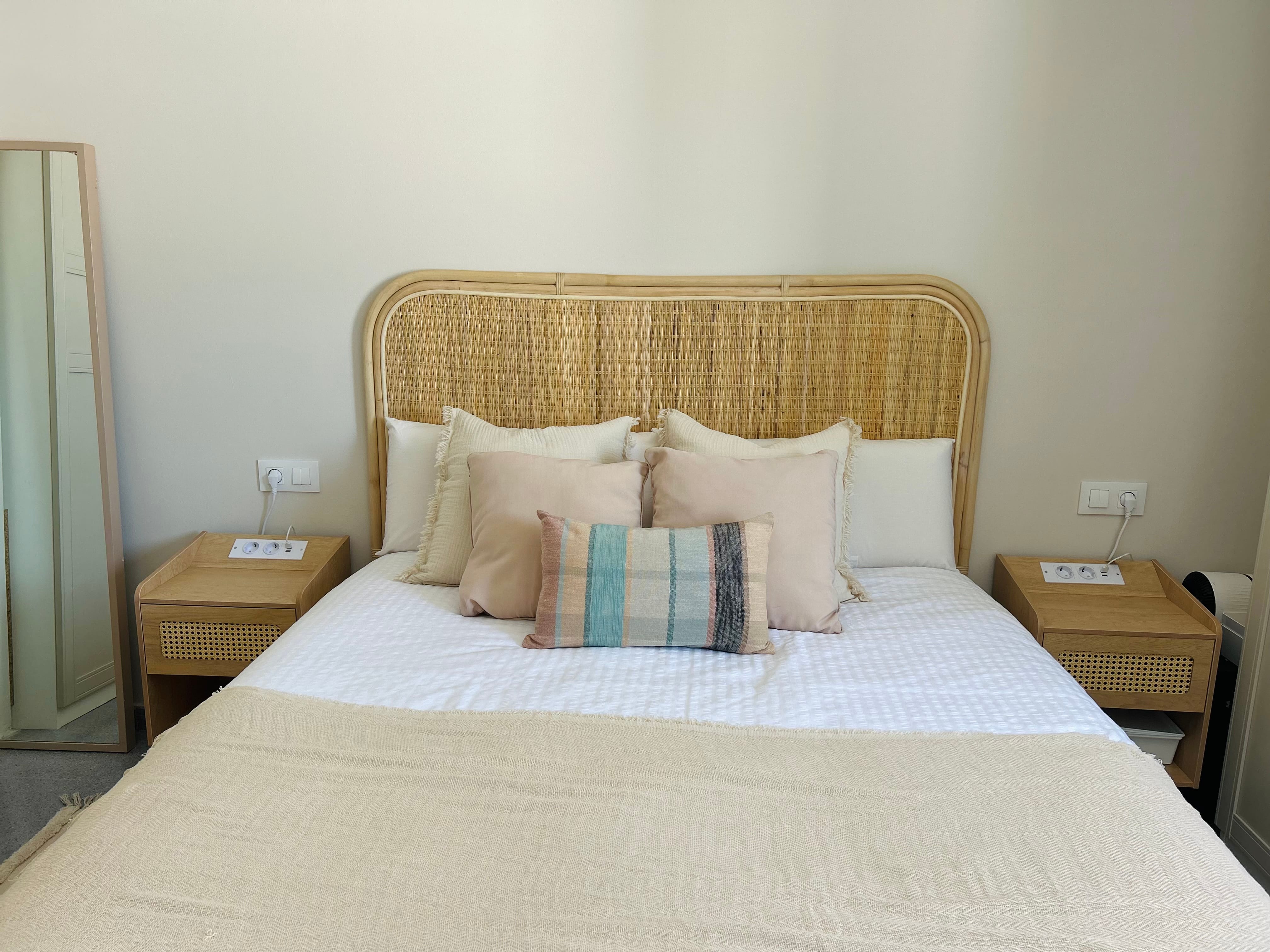 Il testiera in rattan naturale Tesa darà alla tua camera da letto l'aria naturale e fresca che stavi cercando. È realizzata artigianalmente con rattan naturale, quindi può presentare irregolarità e leggere variazioni di tonalità rispetto al colore mostrato nell'immagine. Può essere utilizzata con letti da 135, 150 e 160 cm. Richiede l'ancoraggio a parete. La ferramenta non è inclusa.